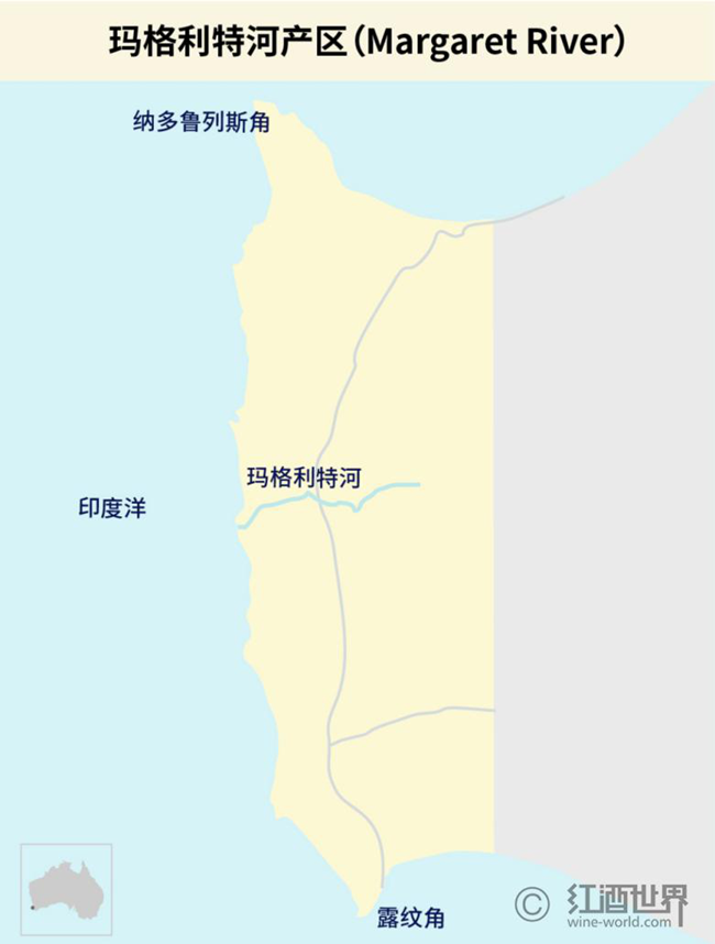 瑪格利特河產(chǎn)區(qū)位于澳大利亞西澳州(Western Australia)的西南角,距該州首府珀斯(Perth)約270公里,是世界上地理位置最偏僻的葡萄酒產(chǎn)區(qū)之一。
