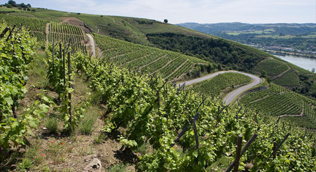 在北羅納河谷(Northern Rhone Valley),獨特的地形和氣候條件鑄就了風格極為強勁的西拉葡萄酒。這里緯度較高,且常年有密斯托拉風(Mistral)吹拂,氣候十分涼爽,是西拉葡萄可以達到完全成熟的臨界環境。正是在這樣的環境下,西拉的品種魅力被完全激發出來。葡萄園大多坐落在東西走向的山谷地帶,以降低從北方吹來的密斯托拉風的影響,且多分布于朝南向的陡峭山坡上,有利于葡萄樹接收充足的陽光和熱量。