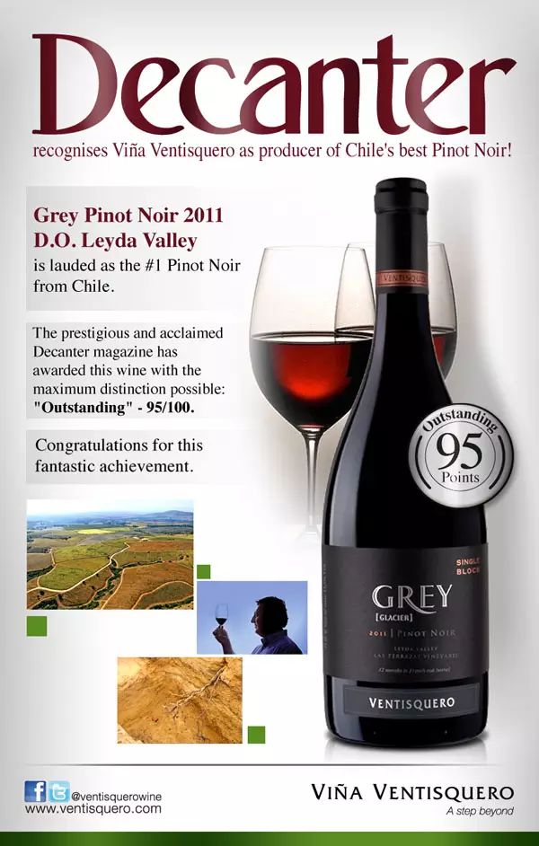 冰川酒莊格麗系列黑皮諾紅葡萄酒 2011 年份(Ventisquero Grey Pinot Noir)就獲過《醇鑒》的 95 分高分評(píng)價(jià),星級(jí)指數(shù) 5 顆星。此款酒散發(fā)黑莓、草莓的香氣,酸度適宜,經(jīng)橡木桶陳釀后單寧柔和,品質(zhì)優(yōu)異。