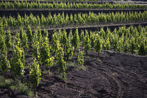 西西里島是意大利重要的葡萄酒產(chǎn)區(qū),其東岸坐落著埃特納(Mount Etna)活火山,噴發(fā)產(chǎn)生的火山巖經(jīng)人力破碎或風化后,成為西西里島產(chǎn)區(qū)典型的種植土壤。火山土通常包含玄武巖、灰質(zhì)土以及其他火山巖的風化碎片,土壤多孔,排水性和蓄水性良好,能儲存和反射熱量,種植的葡萄樹生長態(tài)勢良好,果實成熟度佳。此外,火山土中礦物質(zhì)含量較高,含有鎂、鐵和鉀等多種元素,常被認為能給葡萄酒帶來煙熏、鐵銹和礦物味。