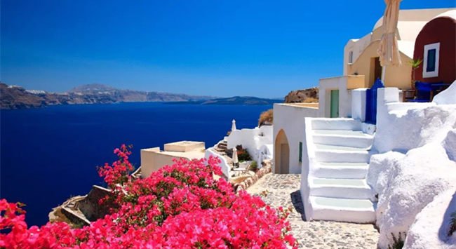 圣托里尼島(Santorini)古名為希臘(Thera),后來為紀念圣·愛蓮(SaintIrene),于1207年被改為圣托里尼。圣托里尼(Santorini)是在希臘大陸東南200公里的愛琴海上由一群火山組成的島環(huán)。