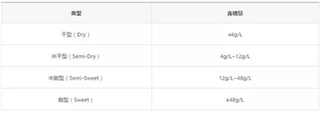 葡萄酒據含糖量分類標準圖