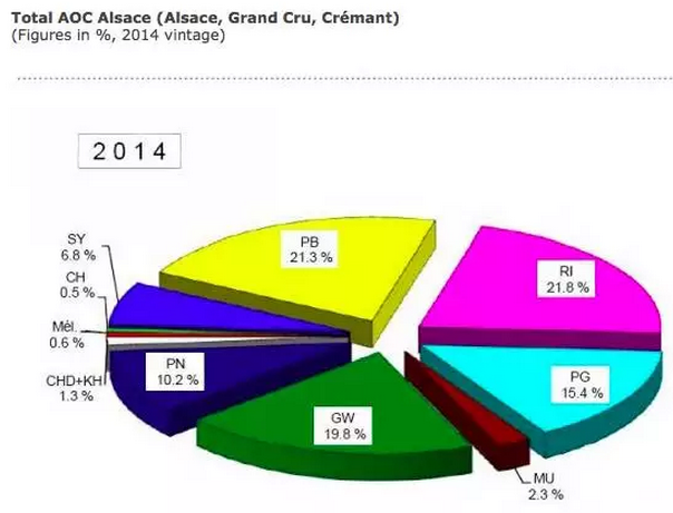 官方給出的統(tǒng)計數(shù)據(jù),2014年在阿爾薩斯三大原產(chǎn)地命名產(chǎn)區(qū) (AOC) 中,白皮諾的種植面積占到所有葡萄品種的21.3%,與種植面積最廣的雷司令 (21.8%) 不分伯仲。