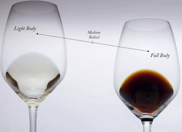 酒體一般形容一款葡萄酒入口后給舌頭的重量感。一般是葡萄酒重量、密度、粘度等口感的總合。一般會用礦泉水和牛奶做示范,展現不同密度的液體入口的感覺。