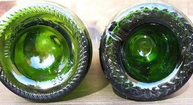 一個說法是當酒瓶仍是手工制作年代,吹玻璃的師傅使用的工具會在酒瓶下方留下一個小小的疤痕,如果瓶底做成一個平面的話,那么這個小小的疤痕就會使酒瓶無法平穩地放在桌子上,因此吹玻璃的師傅為酒瓶發明了這個“凹槽”。