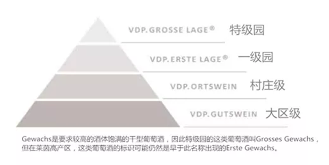 VDP向來崇尚非人工的自然葡萄酒,因此始終提倡能反映葡萄園風土的以自然方式釀造的葡萄酒,逐漸制定了一套類似于法國勃艮第的分級法,以鼓勵有獨特價值的酒莊。在糖分標識方面,該組織也只采用天然殘糖量這一指標。不過,該體系仍然略顯粗糙,暫時沒有像勃艮第分級那樣穩定精細。