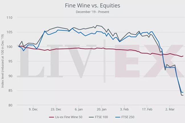 3月14日,liv-ex發(fā)布了一周葡萄酒交易市場報告,報告稱在全球疫情蔓延情況下,上周全球股市遭受嚴(yán)重打擊,但優(yōu)質(zhì)葡萄酒卻一直相對穩(wěn)定。