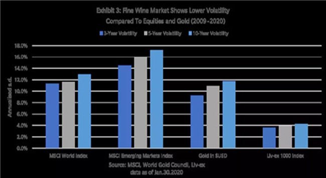 圖表顯示,Liv-ex1000的風(fēng)險比其他指數(shù)的風(fēng)險要低