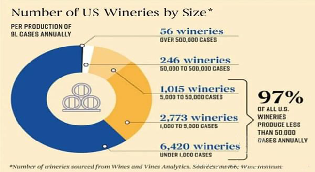 美國97%的酒廠生產的葡萄酒總和不到50000箱,預計年收入損失在36%到66%之間,受影響最大的是小型酒廠。規模越小的酒廠損失則越大,生產1000至5000箱的酒廠預計損失47.5%的年收入,而生產1000箱以下的酒廠其損失高達66%。