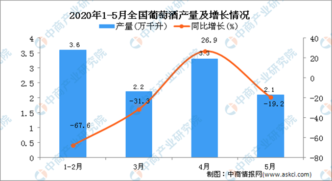 • 2020年1-5月全國葡萄酒產量同比下降32%