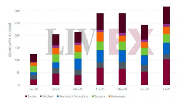 在2020年前7個(gè)月的倫敦佳釀交易所數(shù)據(jù)中,意大利精品葡萄酒的交易額上升了70%。