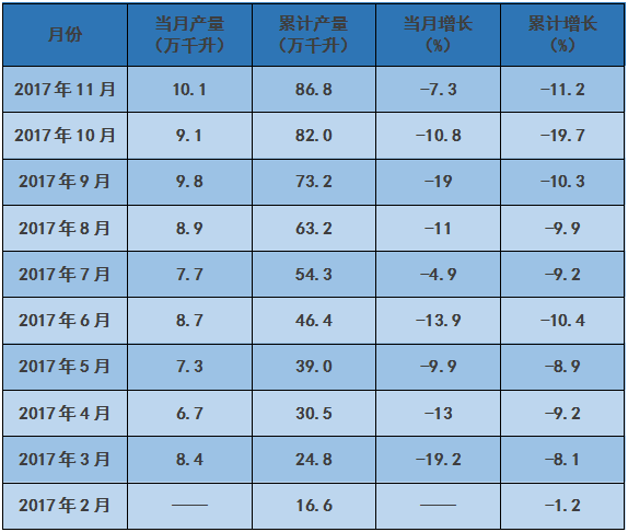據國家統計局發布的最新數據顯示,2016年,全國葡萄酒產量達113.7萬千升。2017年全國葡萄酒產量達100.1萬千升,比2016年減少13.6萬千升,同比下滑12%。2017年1-11月,全國葡萄酒產量達86.8萬千升,同比下滑11.2%,而12月,全國葡萄酒產量達暴增至16.1萬千升,同比增長23.8%。