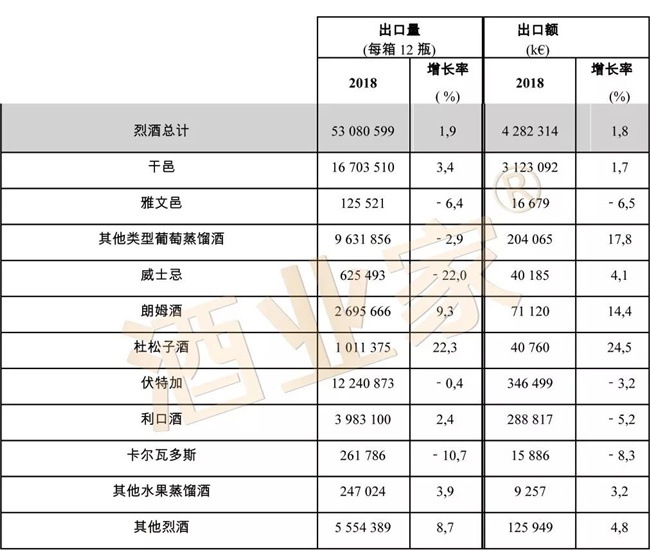 法國烈酒出口保持著健康的增長,出口額增長了1.8%,達到42.82億歐元; 出口量增加1.9%,達到5308千萬箱。
