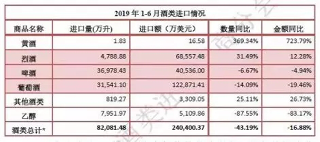 8月12日,中國食品土畜進出口商會酒類進出口商分會公布2019年1-6月酒類統計數據,數據顯示,2019年上半年,進口葡萄酒仍處低位,進口量3.1億升,降幅進一步收窄3%,進口額12.3億美元,降幅基本持平。烈酒方面呈現逆市飄紅,進口量實現超三成增長。