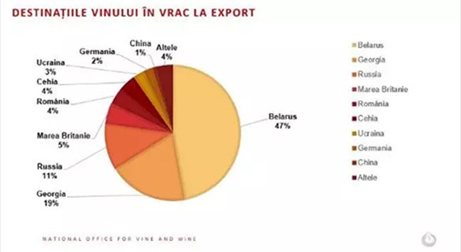 白俄羅斯、格魯吉亞以及俄羅斯進(jìn)口的葡萄酒總量占摩爾多瓦出產(chǎn)散裝葡萄酒總量的77%。格魯吉亞散裝葡萄酒出口增長(+34%),捷克共和國和中國的進(jìn)口量保持穩(wěn)定,而德國(-55.3%)、羅馬尼亞(-43.7%)、烏克蘭(-43.5%)以及白俄羅斯(-2.7%)的進(jìn)口量有所下降。