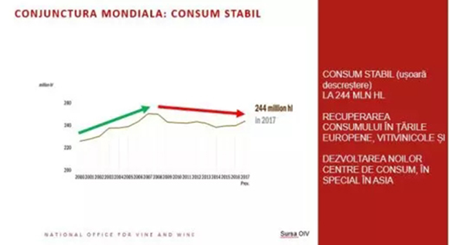 在過去14年中,全球盛產(chǎn)葡萄酒,且十年來葡萄酒消耗量陷入停滯,導(dǎo)致葡萄酒供大于求。摩爾多瓦共和國更是連續(xù)兩次取得創(chuàng)紀(jì)錄的豐收,并設(shè)法保持主要出口指標(biāo)相對穩(wěn)定,出口量小跌但影響甚微。