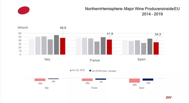 • 2019全球葡萄酒產量同比去年下降10.54%