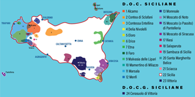 西西里地處歐亞中東的十字路口,是地中海最大的島嶼。大自然的恩賜使這里十分適宜葡萄生長(zhǎng)。島嶼整體呈典型的地中海氣候,但又因島內(nèi)多樣性的地形,造就了各具特色的區(qū)域風(fēng)格:內(nèi)陸干燥而熾熱,海岸暖風(fēng)習(xí)習(xí),埃特納火山以及山丘地區(qū)濕潤(rùn)而涼爽。因此,西西里成為了意大利最大的葡萄種植區(qū),出產(chǎn)各式性格鮮明的葡萄酒。西西里因其戰(zhàn)略性的地理位置,在歷史上曾是兵家必爭(zhēng)之地。也成就了其悠久的釀酒歷史,最早可追溯至公元前8世紀(jì)。如今的西西里是意大利第一個(gè)追求有機(jī)種植的地區(qū),尊重自然和可持續(xù)性發(fā)展。越來越多的釀酒師致力于打造新鮮而直接的美酒,選擇更為現(xiàn)代的風(fēng)格,適應(yīng)國際菜肴的搭配。近年來,西西里葡萄酒生產(chǎn)取得了突飛猛進(jìn)的進(jìn)步:2018年瓶裝產(chǎn)量約為8000萬瓶,較之2017年的3000萬瓶增長(zhǎng)了167%。而2019全年的瓶裝產(chǎn)量預(yù)計(jì)會(huì)達(dá)到1億瓶。