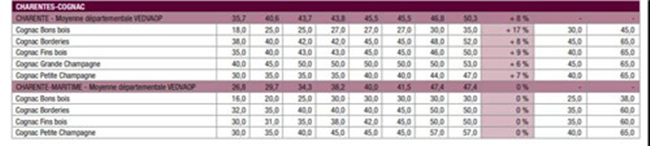 干邑白蘭地是香饃饃,非AOP級別的干邑產(chǎn)區(qū)葡萄園也是,這類葡萄園的價格也上漲了2.3%,達到1.42萬歐元/公頃。