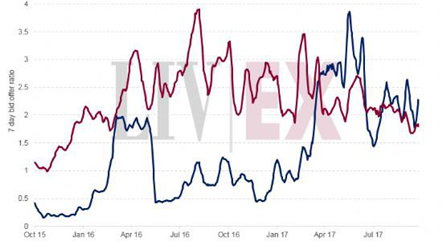 • Liv-ex的實(shí)時(shí)出價(jià)和報(bào)價(jià)總值持續(xù)不斷創(chuàng)紀(jì)錄高位,目前約在4750萬(wàn)英鎊水平。即自三周前公布的新紀(jì)錄以來(lái),又再增加了250萬(wàn)英鎊。 令人鼓舞的是,出現(xiàn)出價(jià)和報(bào)價(jià)總值增加的酒區(qū)不只限于波爾多,而跨越了多個(gè)不同的酒區(qū)市...